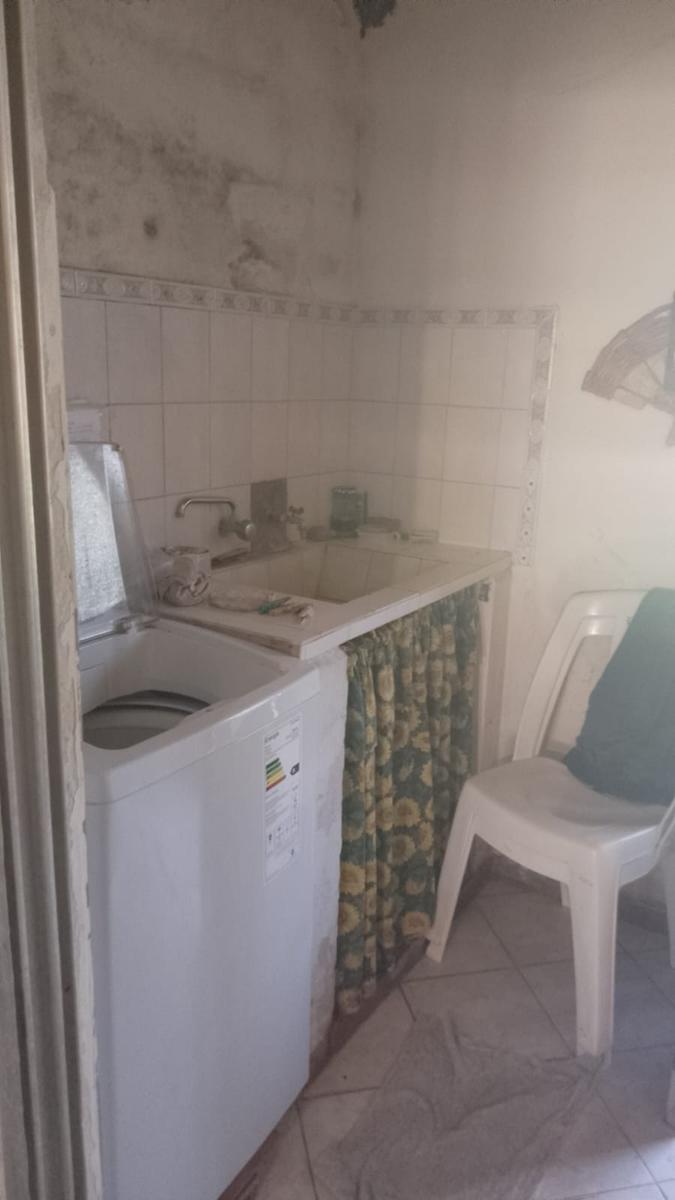 # Esta cuenta con un frente de 11 metros sobre calle Sáenz Peña, que cuenta con: 1) un paredón con rejas, una puerta peatonal y un portón para ingreso al garaje; 2)un living comedor con un a estufa hogar, un calefactor y un placard; 3) una cocina con mesada, bajo mesada y alacena; 4) un lavadero con mesada; 5) un patio trasero, el cual se encuentra totalmente cercado con paredones de material; 6) dos habitaciones, una con placard embutido y calefactor de tiro balanceado; 7) un baño, 8) un garaje.